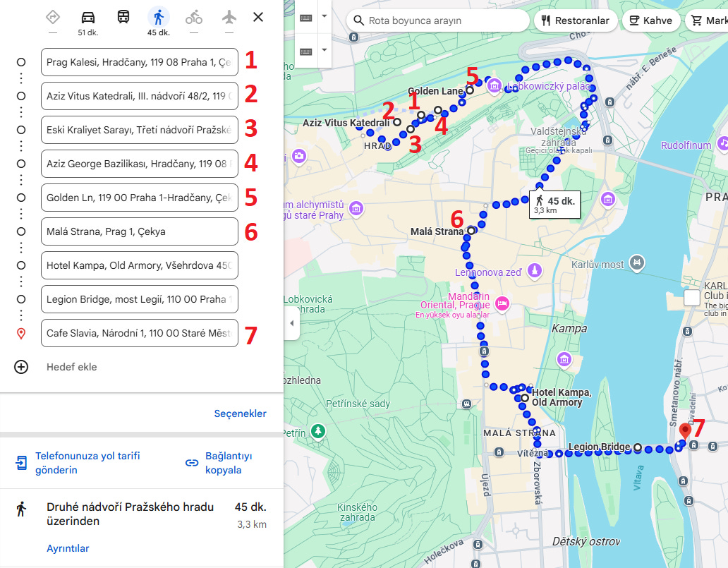Kale - Mala Strana - Cafe Slavia Yürüyüş Rotası İçin Tıklayın;