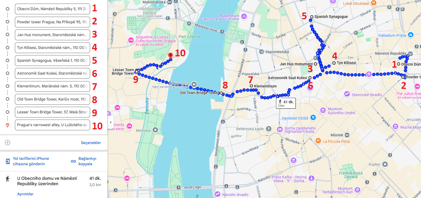 Prag Stare Mesto Yürüyüş Rotası İçin Tıklayın;